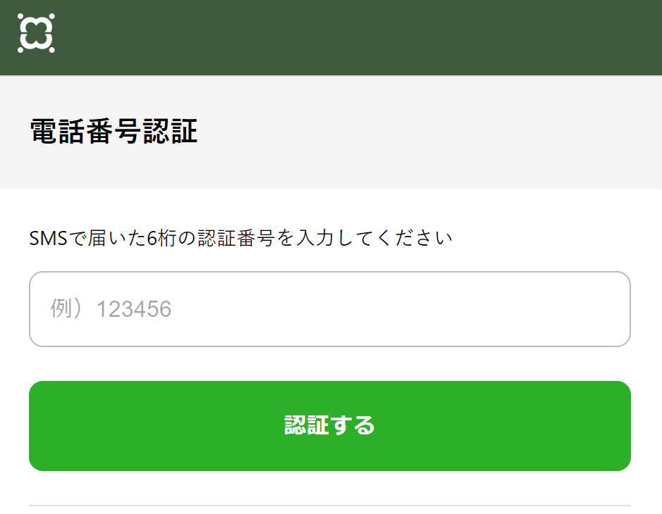 - 携帯電話のSMS(ショートメッセージサービス)を利用して電話番号認証をおこないます。入力いただいた携帯電話に受信された認証番号(6桁の半角数字)をご入力ください。