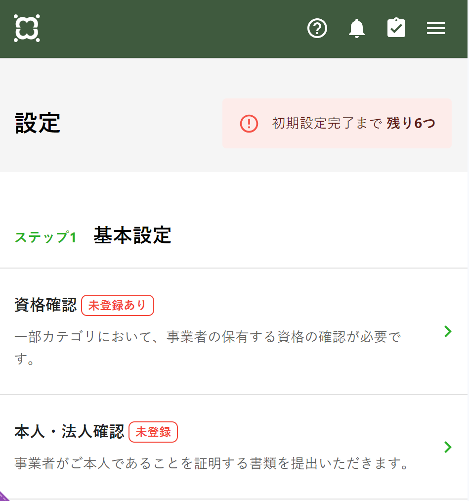 全ての項目のご入力と審査が完了いたしましたら、事業者登録と設定は完了となり、依頼にご応募可能となります。