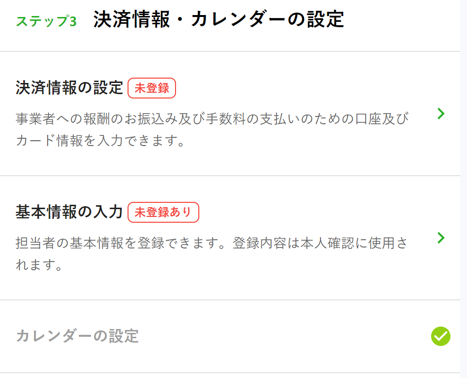 ステップ3 決済情報・カレンダーの設定- ・基本情報の入力、プロフィール設定
